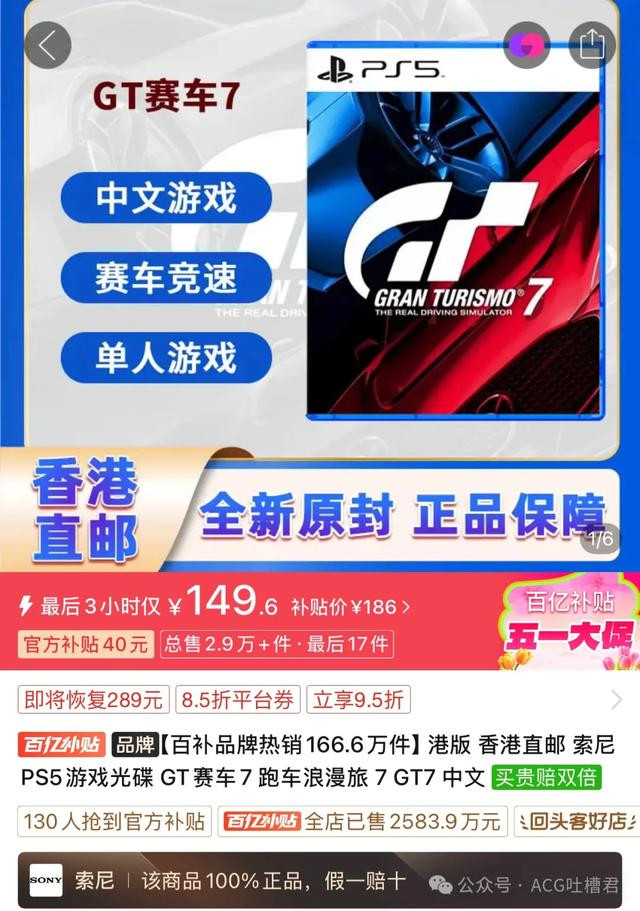 今天周五,各位玩家五一假期好,欢迎再次来到ACG吐槽君的【索尼PS5实体游戏碟好价推荐】频道,这期给大家带来的是2025年5月2日某多平台上低价的PS5全新游戏,其中PS5游戏《GT赛车7》149元全新包邮。值得一提的是最近某多百亿补贴栏目有7.5折券,如果你的账号有看见这个券,赶紧领券买游戏或者配件,折扣价更低。