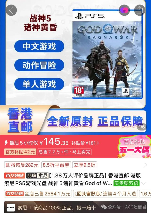 3.PS5游戏《战神:诸神黄昏》港版中文145.35元全新包邮,像索尼这种原先独占再跨平台登录PC端的游戏多半会崩盘,现在这个价可以算不错了,适合PS5新玩家或者实体版收藏。