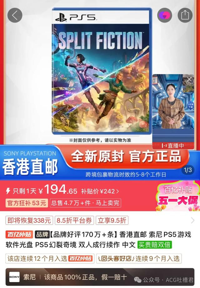 2.PS5游戏《双影奇境》港版中文194.65元全新包邮,作为《双人成行》的正统续作,行情价已经崩了一半,原因可能是由于商家进货太多想复制前作销量和热度,但供大于求,并不是每个人线下都有可以一起打游戏的伙伴,个人觉得其价格还可以更低,差不多150元左右就可以购入了。